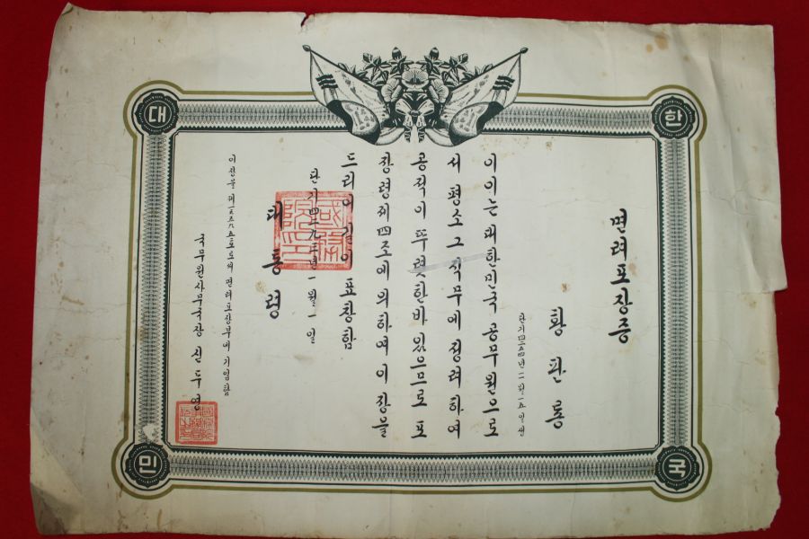 • 1960년 대통령 면려포장증