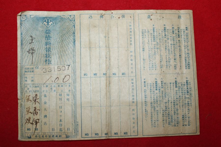 • 일제시기 보험료영수장