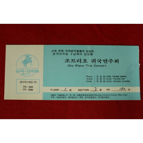 • 1982년 조피아노트리오 귀국연주회 팜플렛,입장권 1장