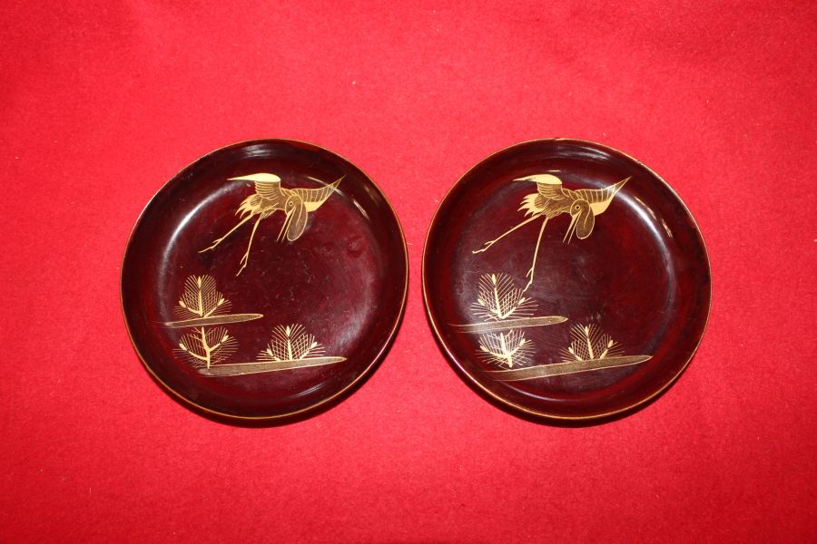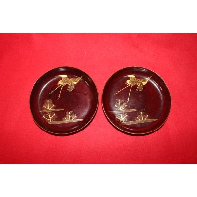 나무에 금채노송학문완 2점 > 일본미술품