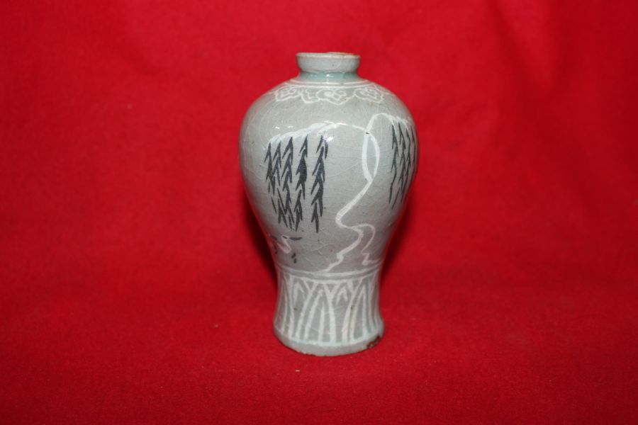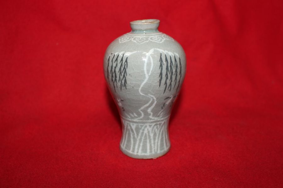 • 7-청자 흑백상감버드나무오리문 소매병