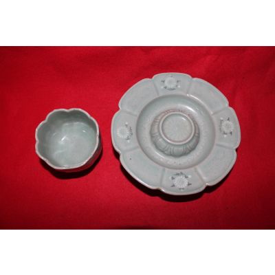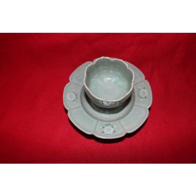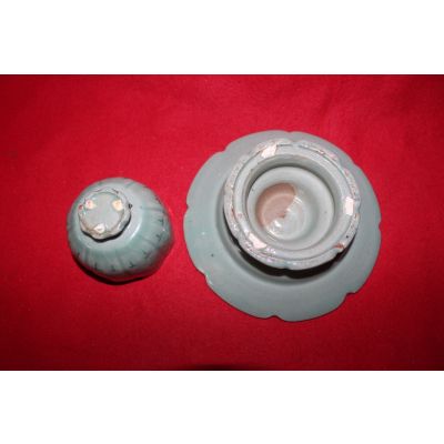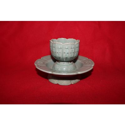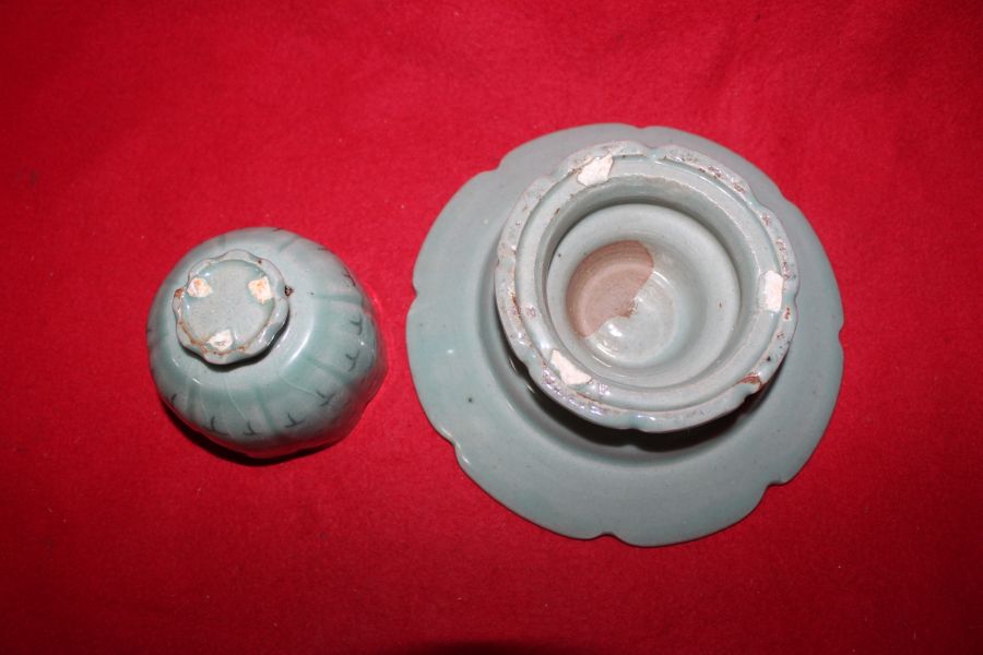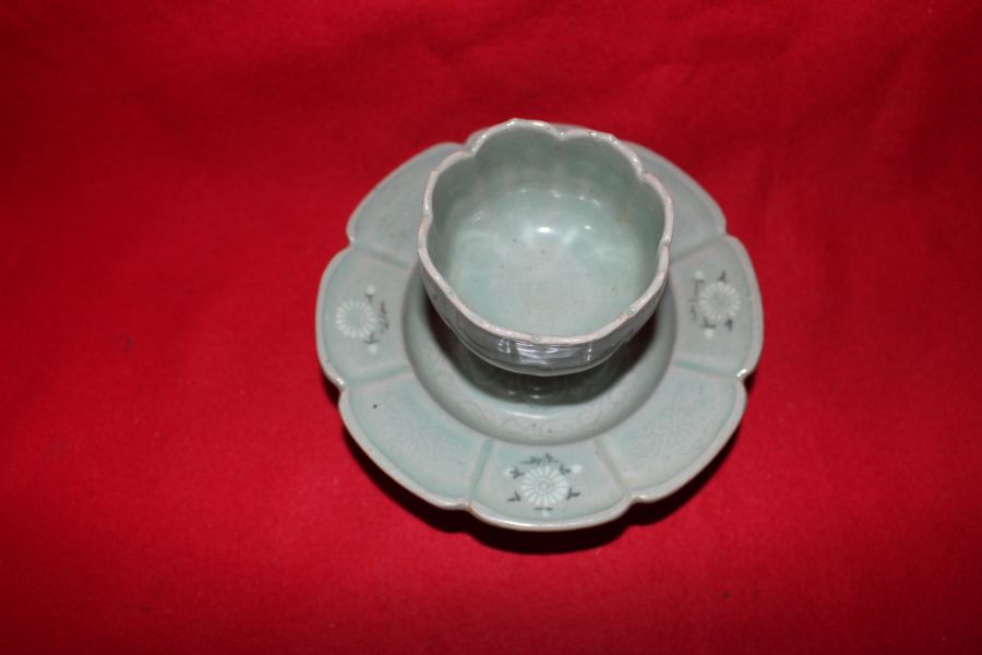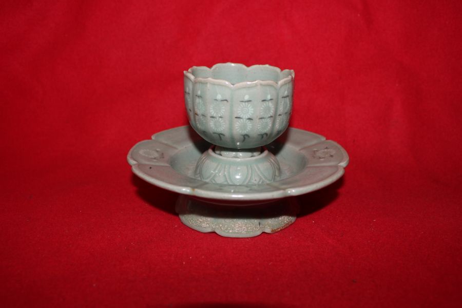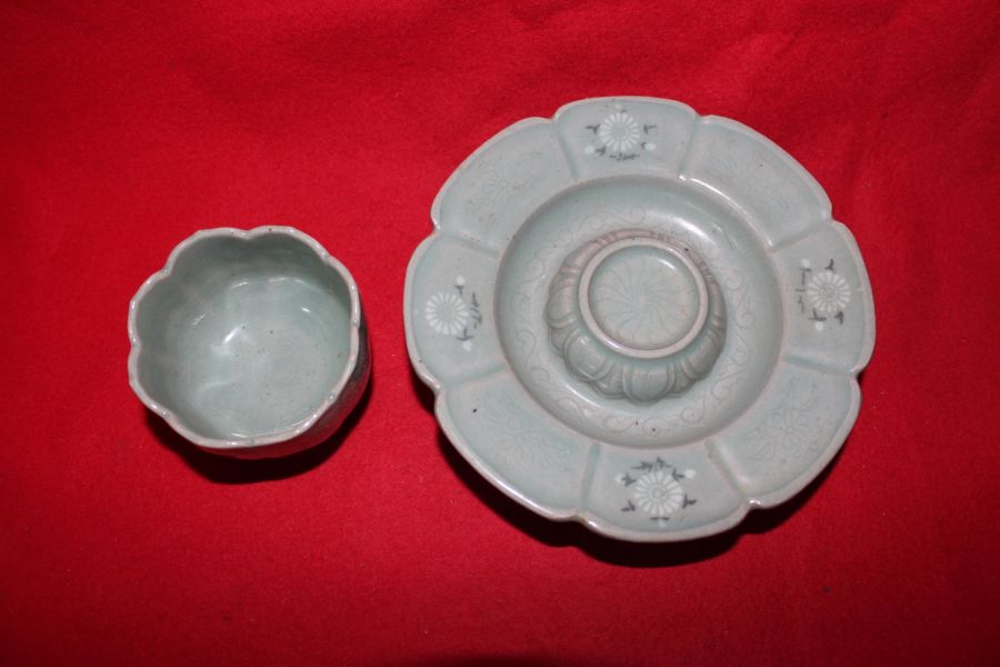 장작가마작품 청자흑백상감국화문 잔잔대 > 한국미술품