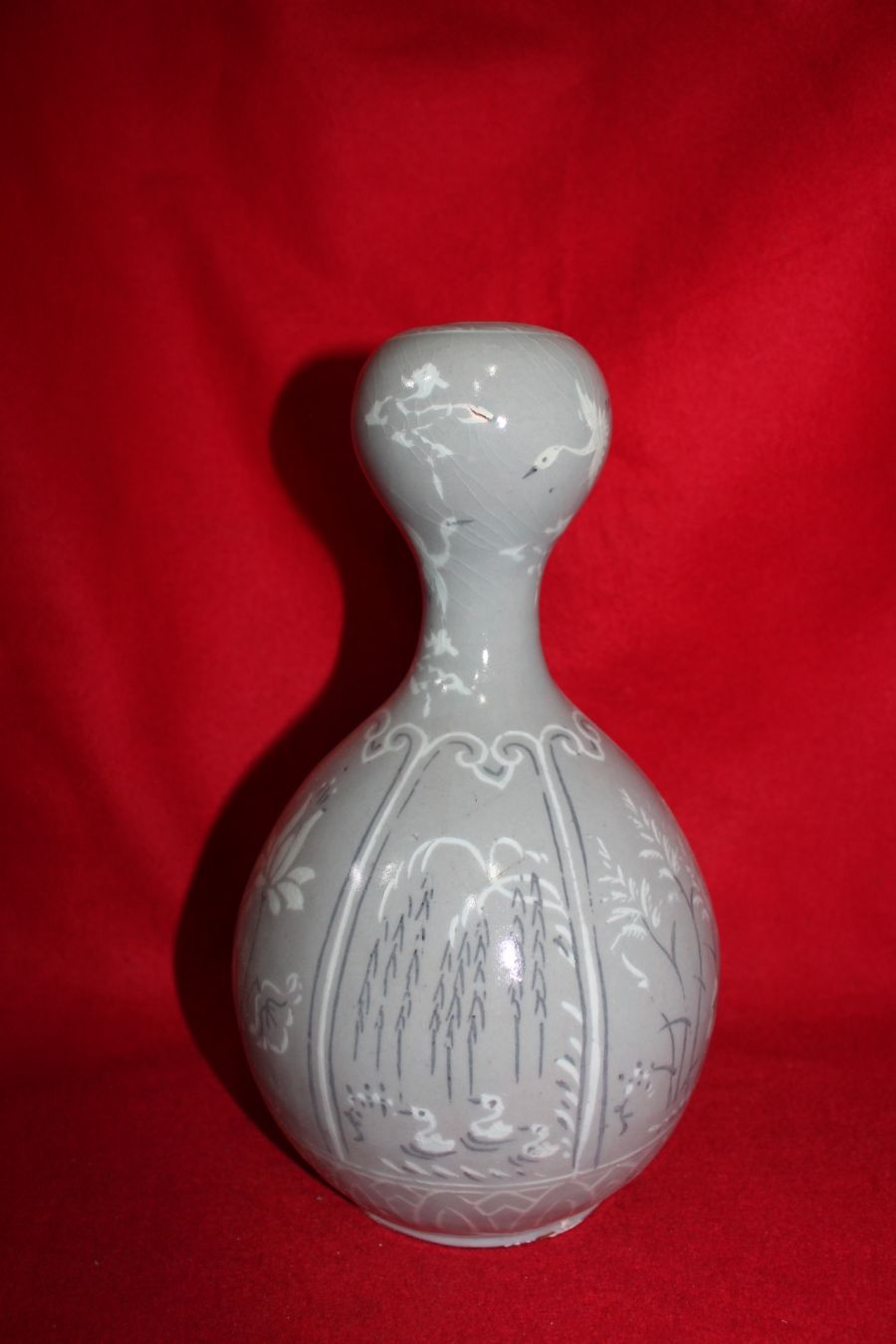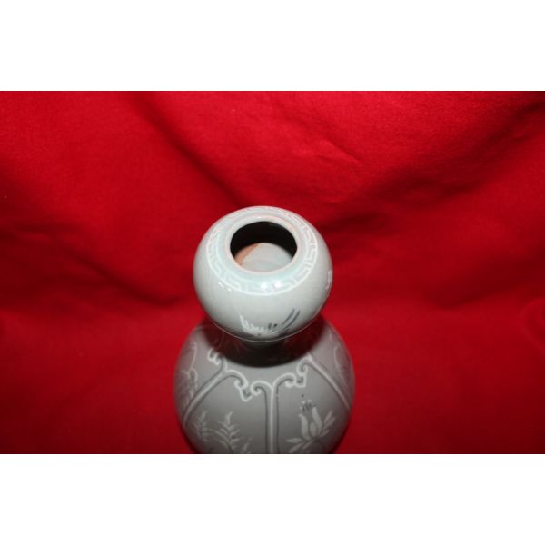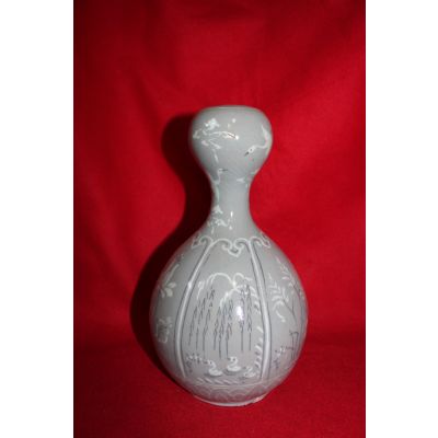 • 청자 흑백상감오리버드나무문 호리형 호