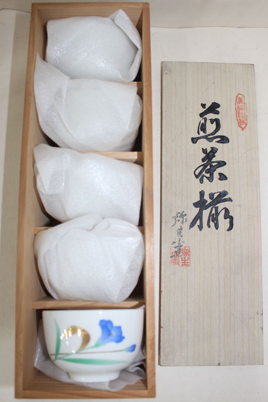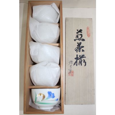청화백자 금채화문잔 5점 > 일본미술품
