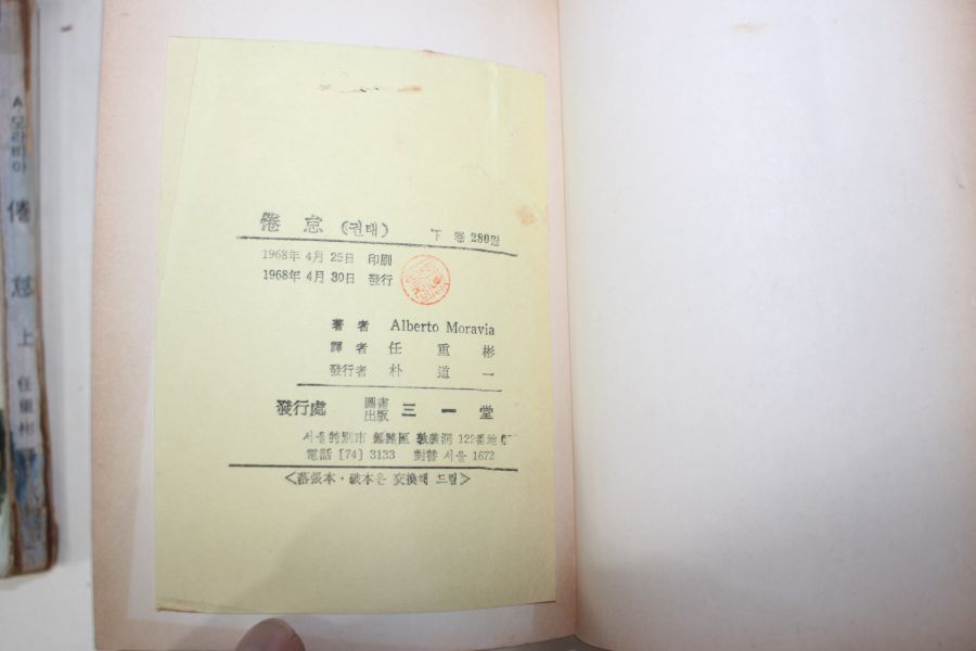 • 1968년 임중빈(任重彬) 모라비아 권태(倦怠) 상하 2책완질