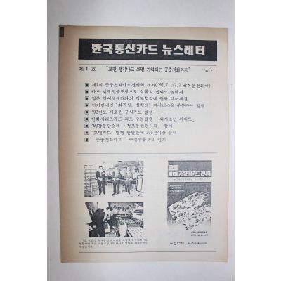 1992년 한국통신카드 뉴스레터 창간호 요약정보 및 구매