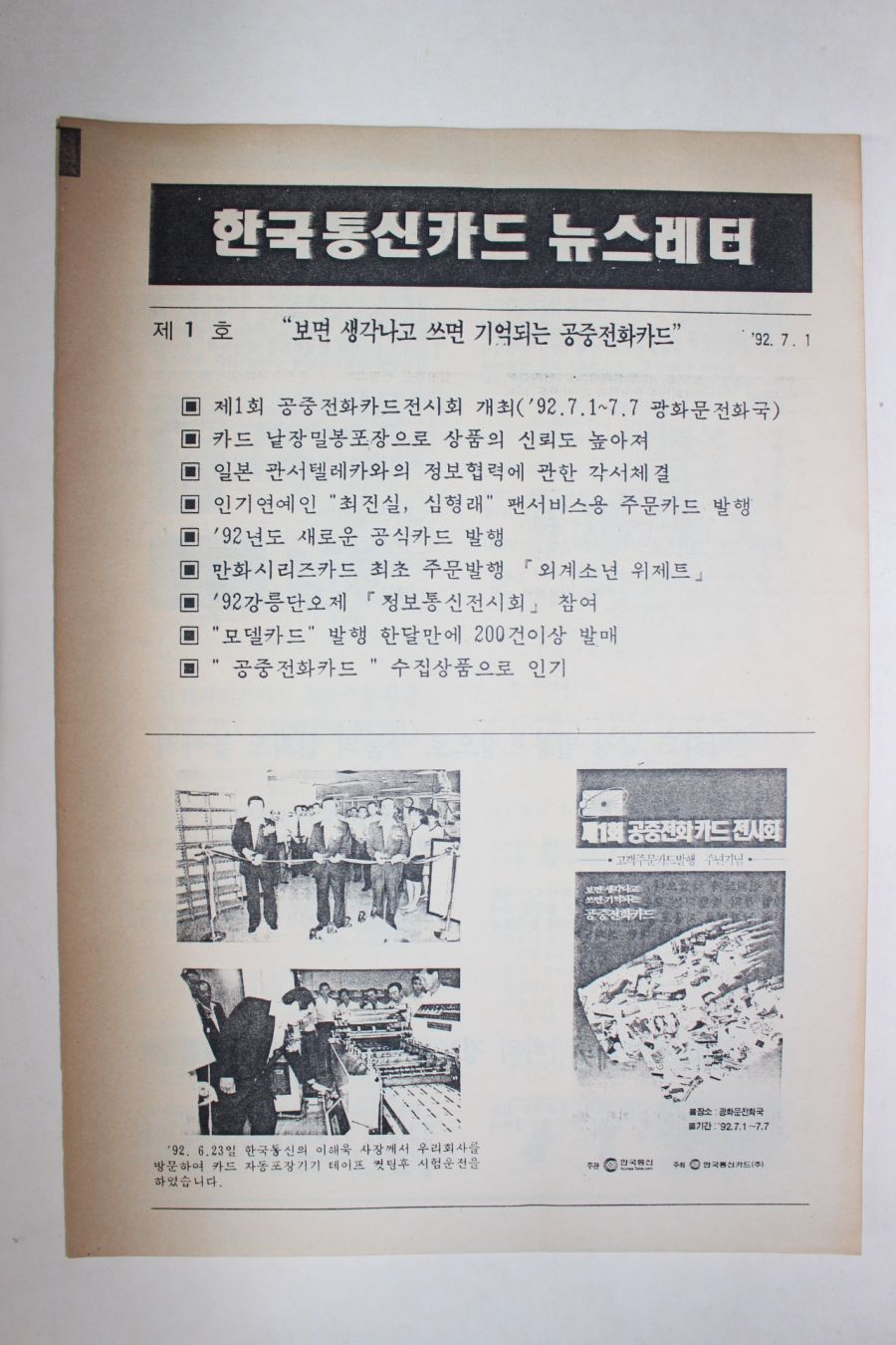 • 1992년 한국통신카드 뉴스레터 창간호