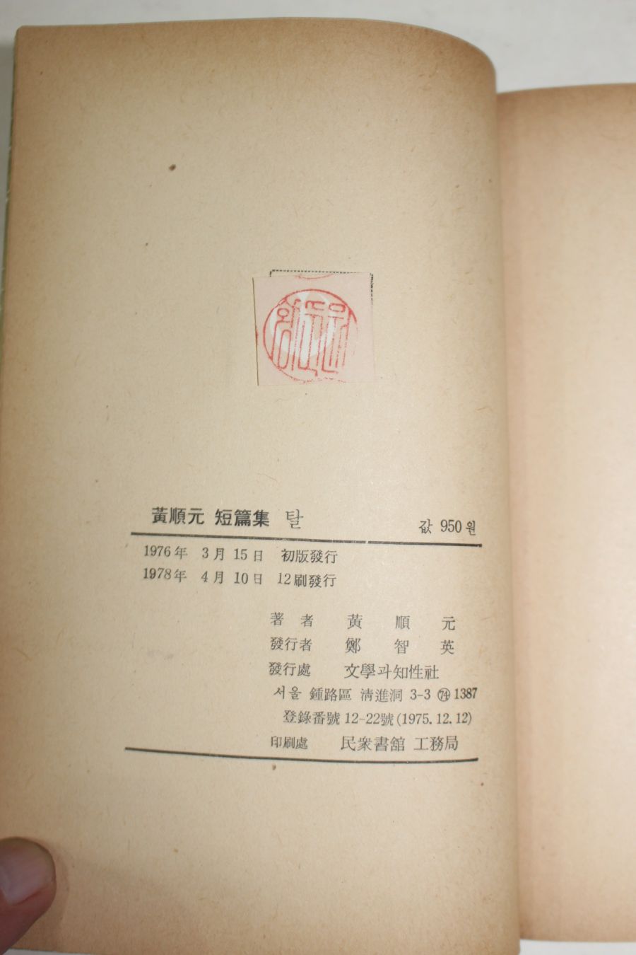 1978년 황순원(黃順元)단편집 탈 요약정보 및 구매