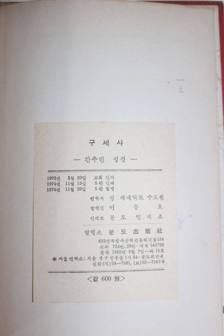 1974년 성 베네딕도 수도원 구세사 요약정보 및 구매