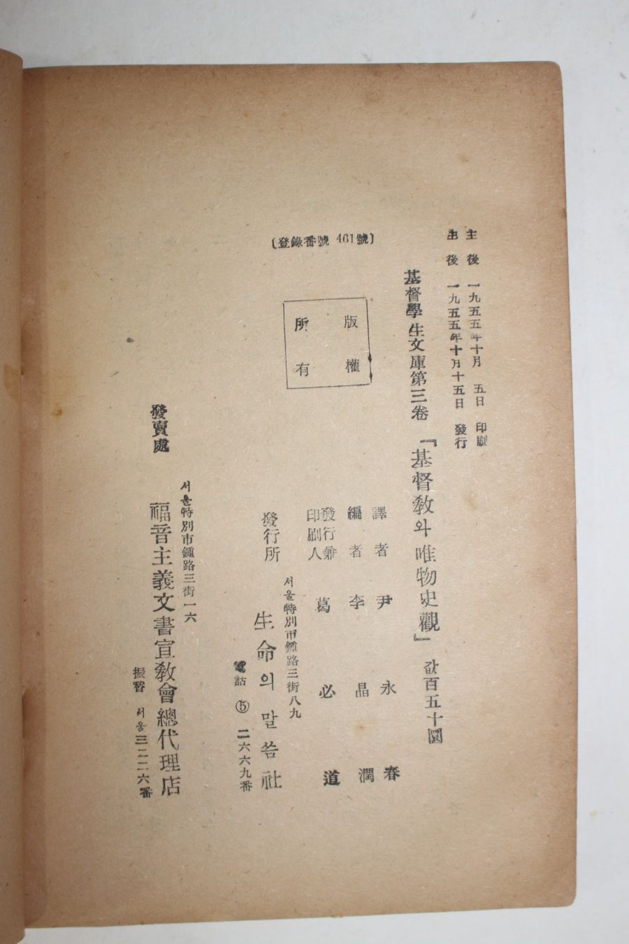 1955년초판 오영천(吳永泉) 기독교와 유물사관(基督敎와 唯物史觀) > 근대도서