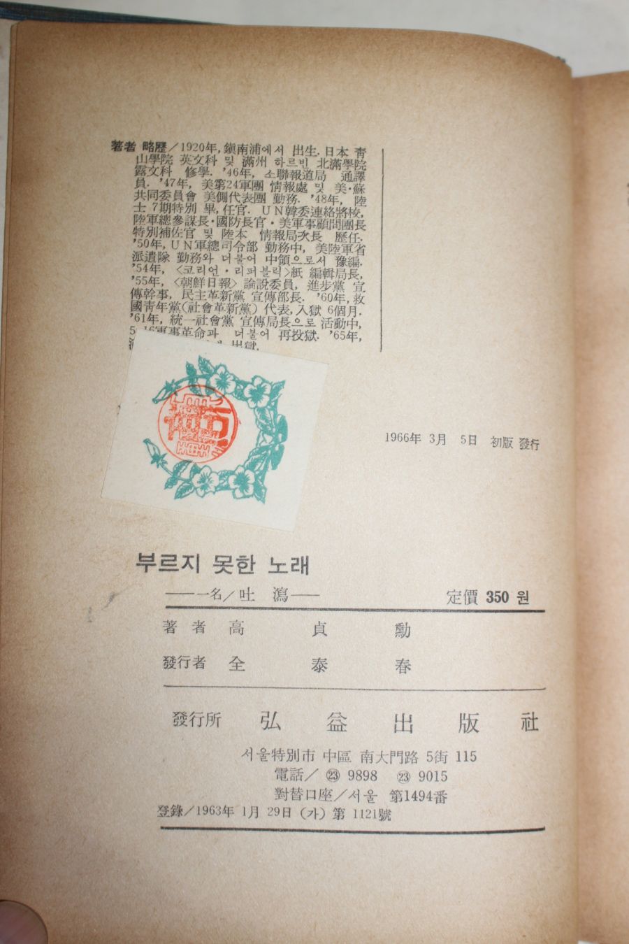 • 1966년초판 고정훈(高貞勳) 부르지 못한 노래