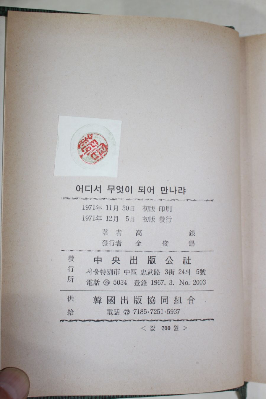 • 1971년초판 고은(高銀) 어디서 무엇이 되어 만나랴