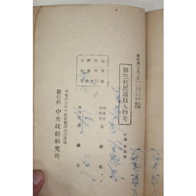 1957년 김종범(金鍾範) 제3대 민의원인물고 (第3代)民議員人物考 요약정보 및 구매