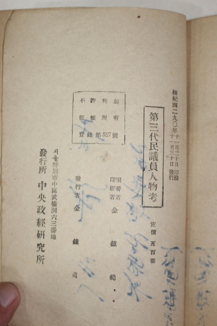 1957년 김종범(金鍾範) 제3대 민의원인물고 (第3代)民議員人物考 > 근대도서