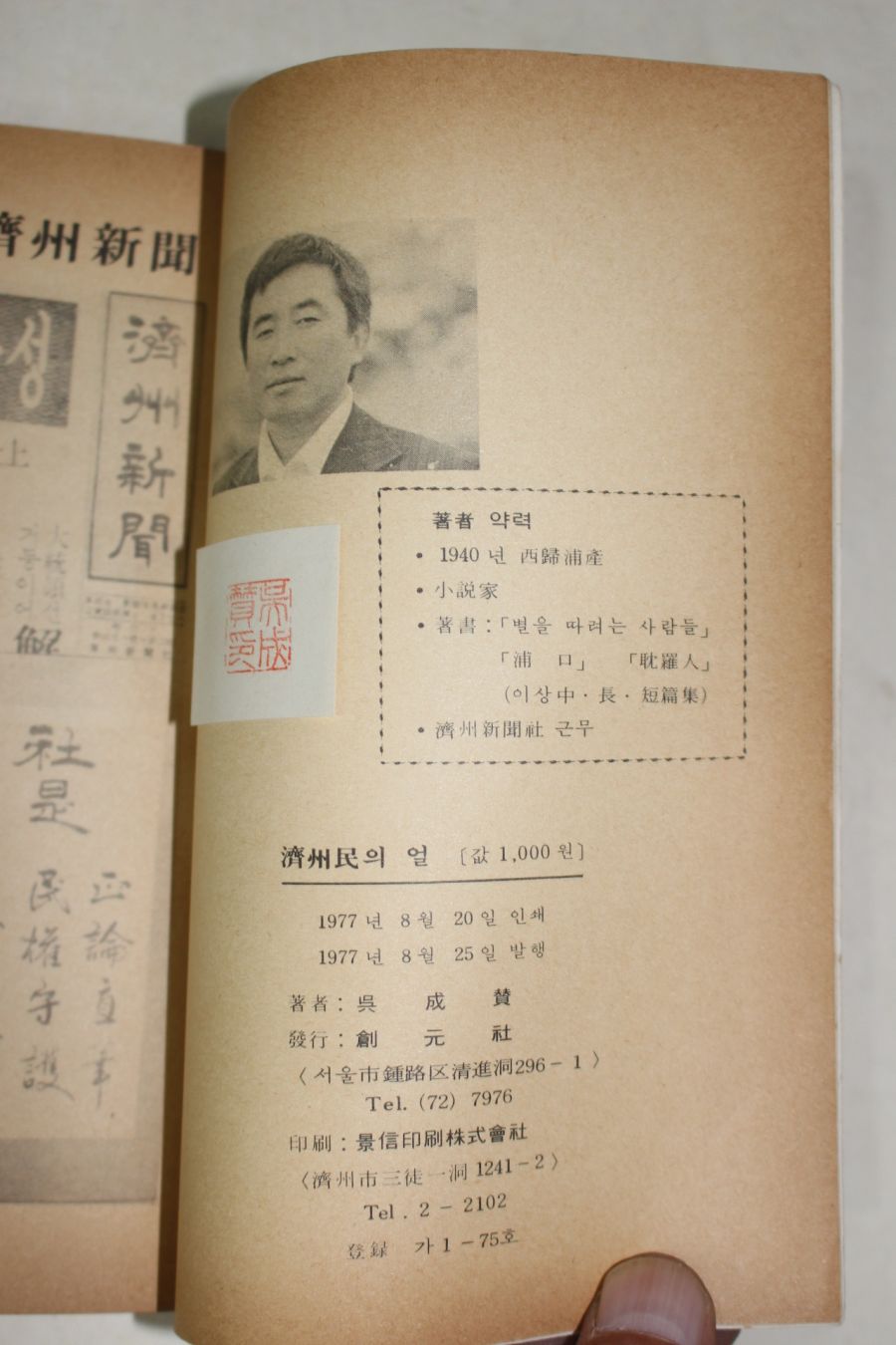 • 1977년초판 오성찬(吳成贊) 제주민의 얼(濟州民의 얼)
