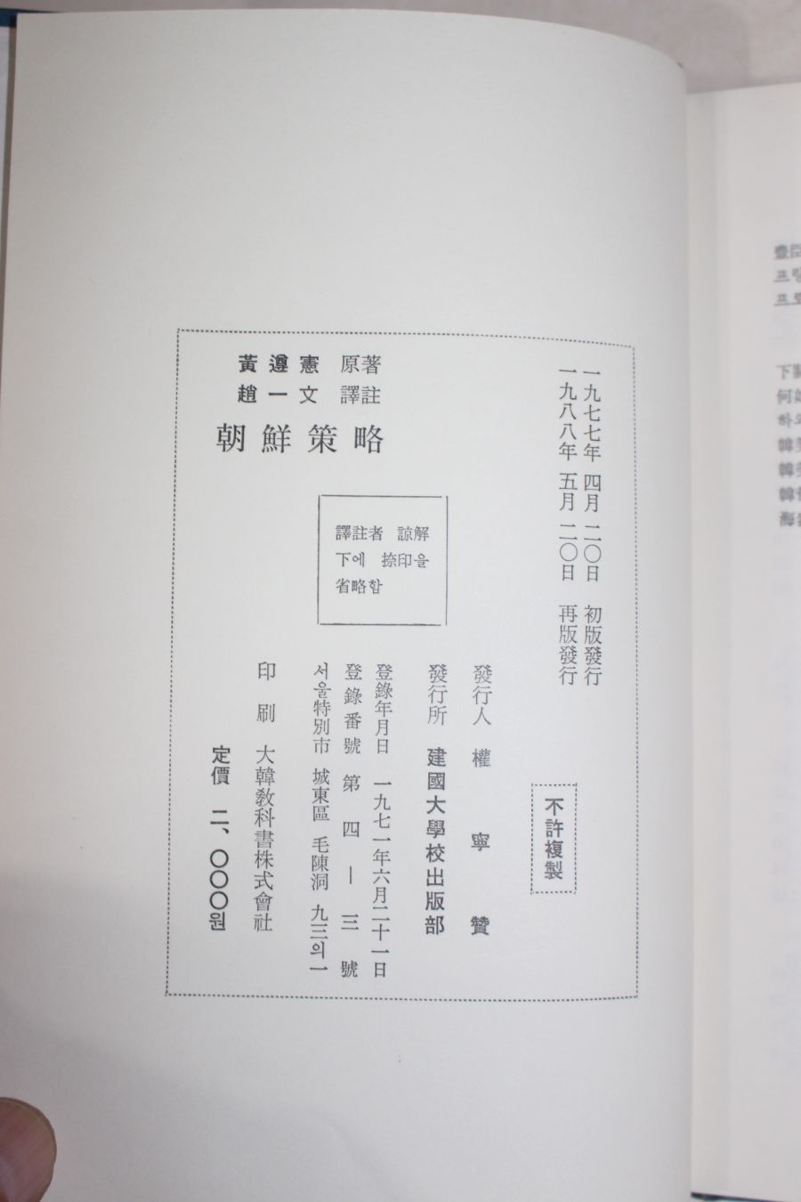 1988년재판 황준헌(黃遵憲) 조선책략(朝鮮策略) > 근대도서