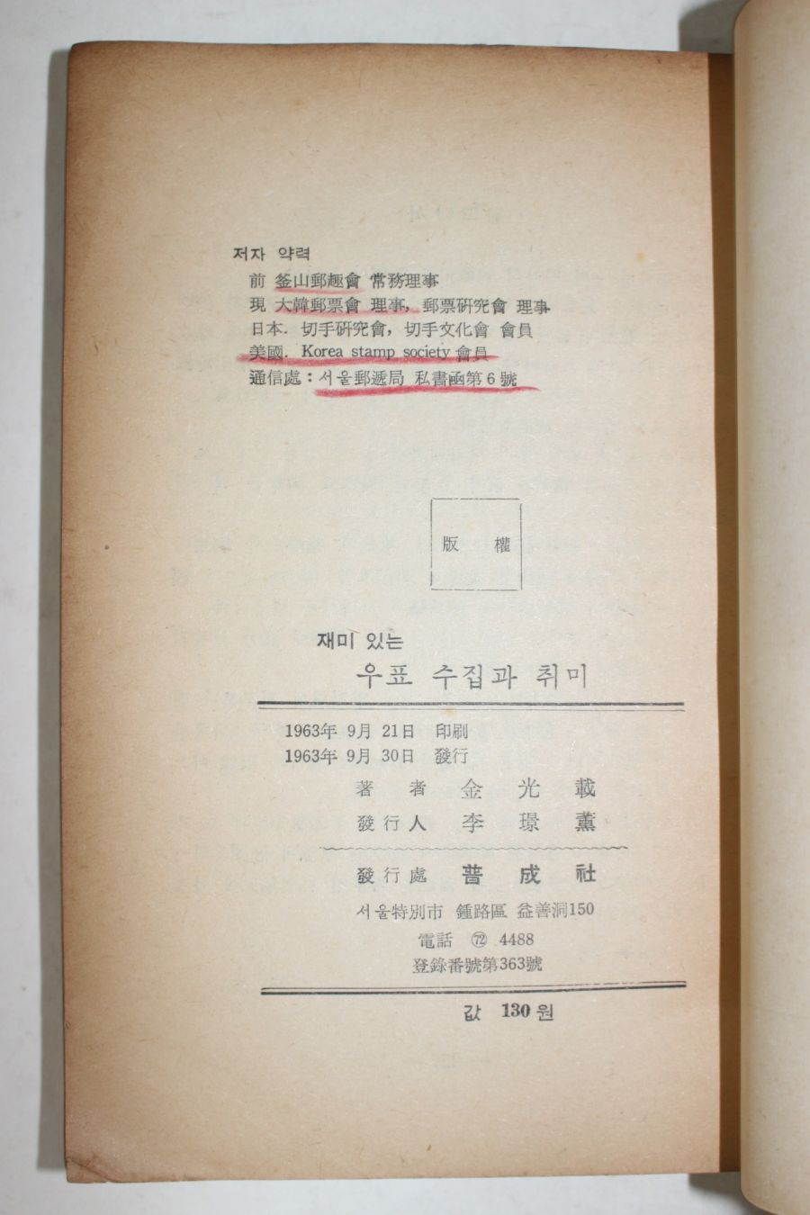 • 1963년초판 김광재(金光載) 재미있는 우표수집과 취미