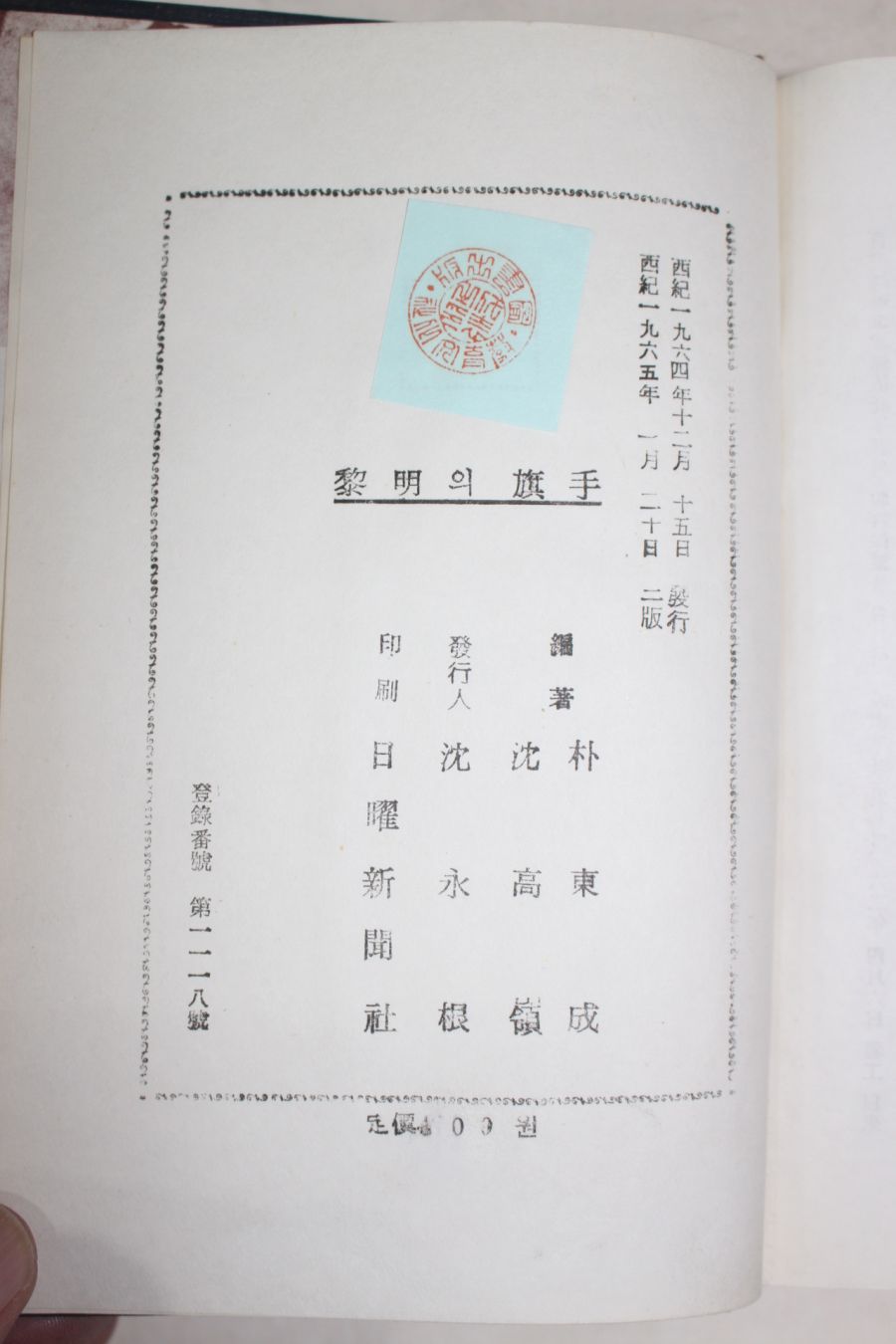 • 1965년2판 박정희대통령 박동성(朴東成)심수령(深壽領)공저 여명의 기수(黎明의 旗手)