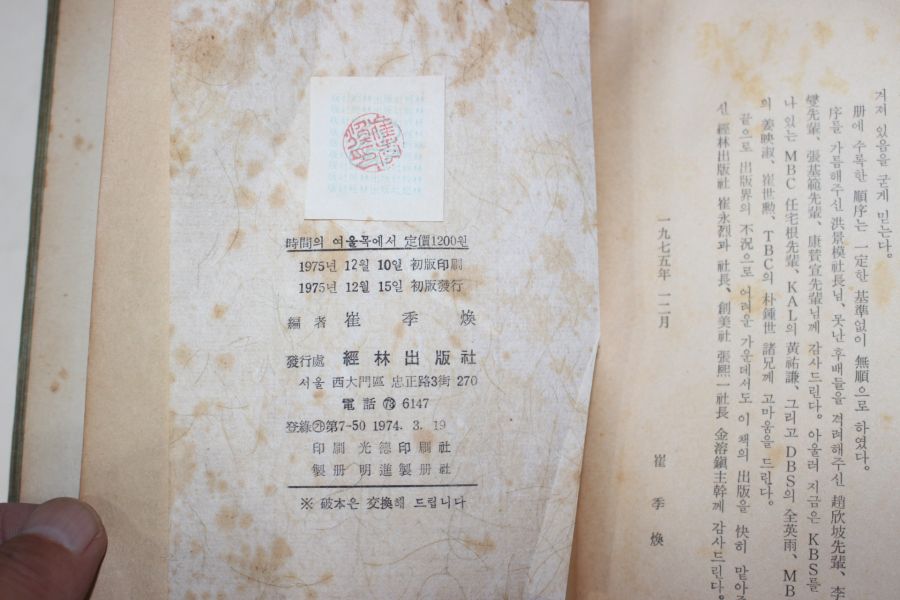 1975년초판 최계환(崔季煥) 시간의 여울목에서 > 근대도서