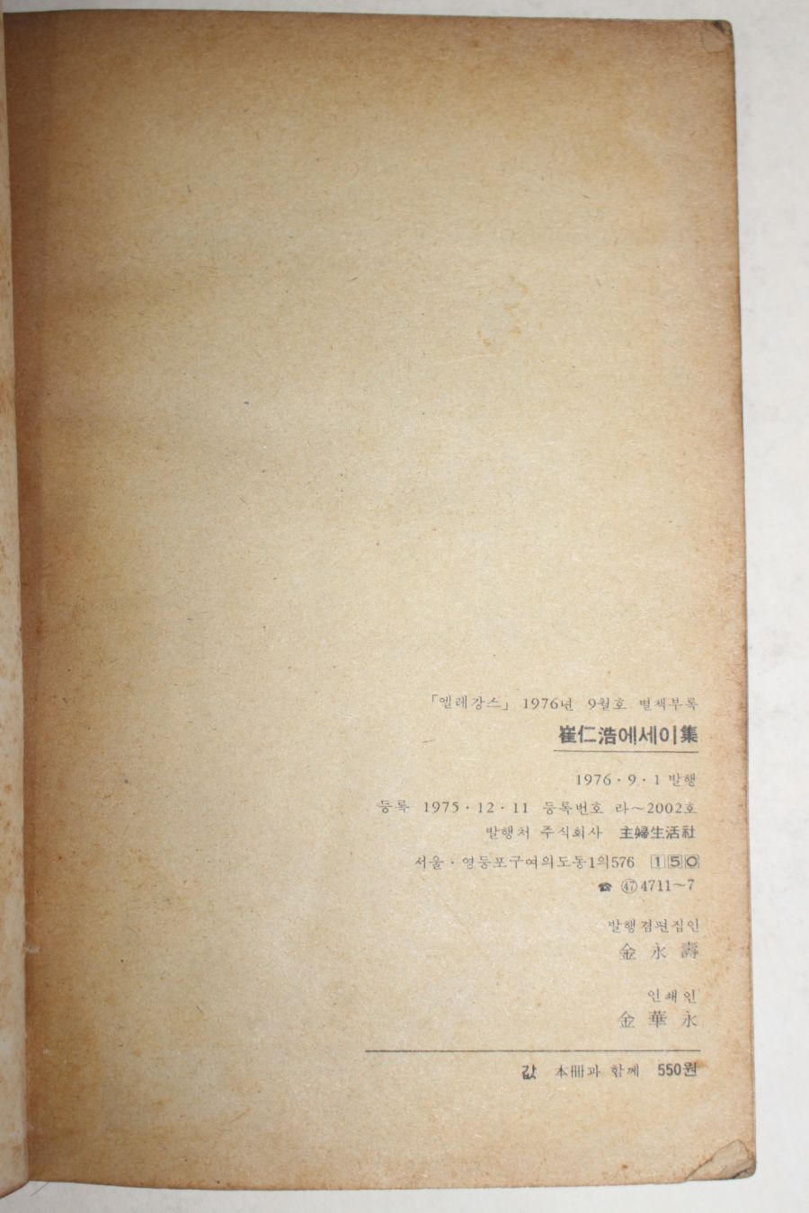 • 1976년 엘레강스 별책부록 최인호(崔仁浩) 에세이집