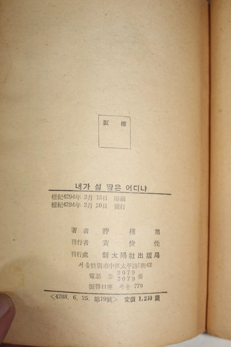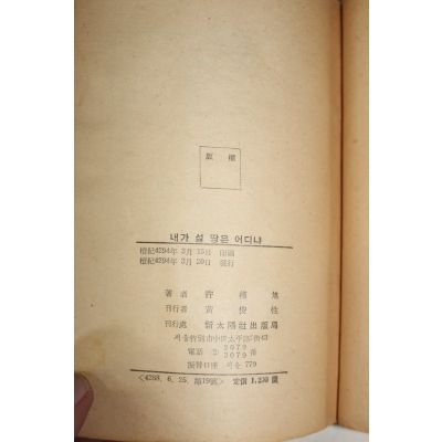 1961년초판 허근욱(許槿旭)소설 내가 설땅은 어디냐 > 근대도서
