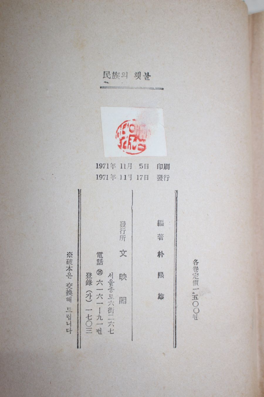 • 1971년초판 박희웅(朴熙雄) 민족의 횃불