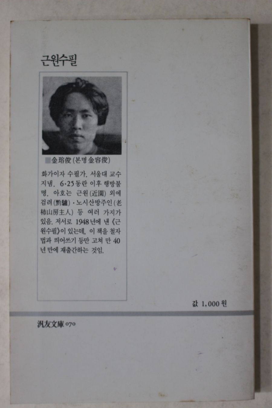 1988년초판 김용준 근원수필(近園隨筆) > 근대도서