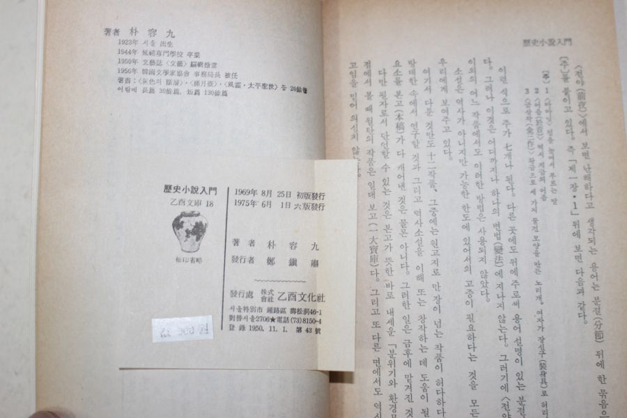 • 1975년6판 박용구(朴容九) 역사소설입문(歷史小說入門)