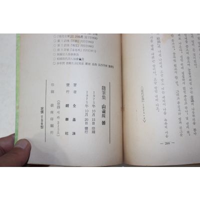 1975년초판 전기수(全基洙)수필집 산골의 봄(山골의 봄)(저자싸인본) > 근대도서