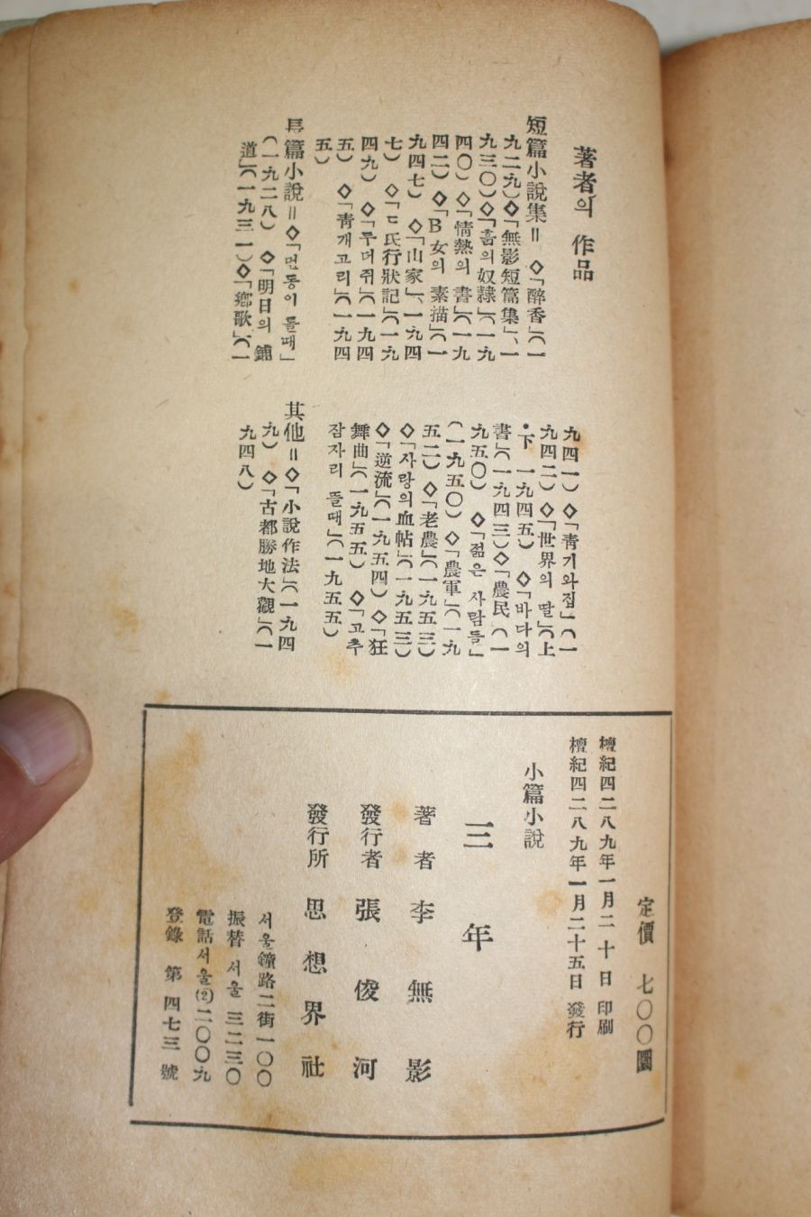 1956년초판 이무영(李無影) 장편소설 삼년(三年) > 근대도서