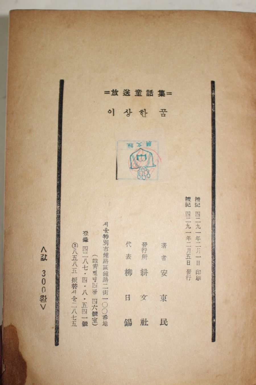 1958년초판 안동민 방송동화집 이상한 꿈 > 근대도서