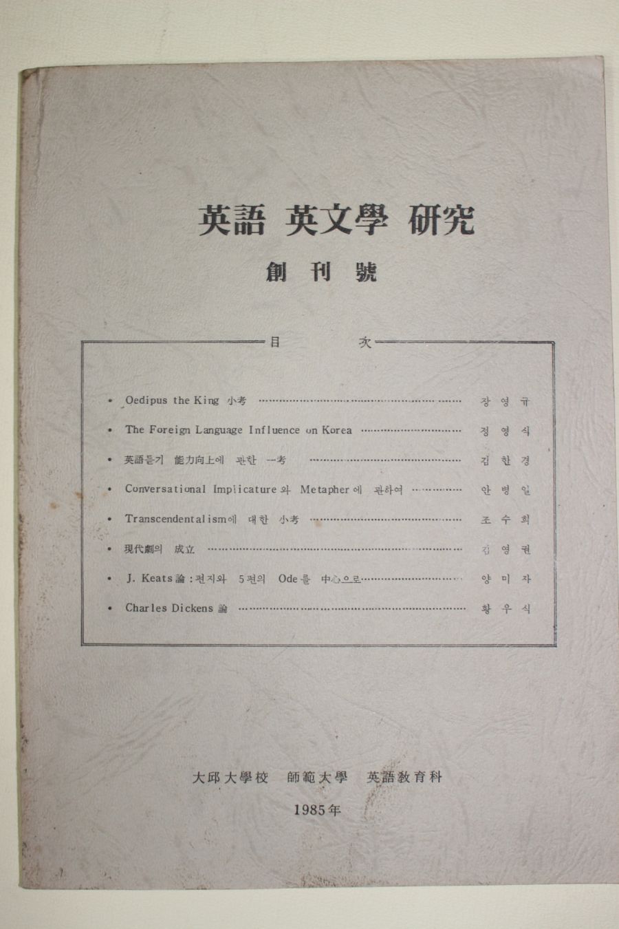 • 1985년 대구대학교 영어영문학연구 창간호