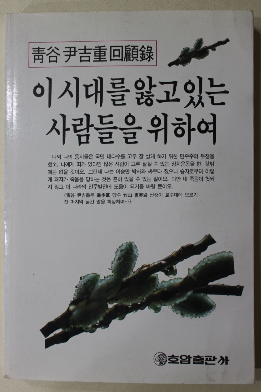 1991년초판 청곡 윤길중(尹吉重)회고록 이시대를 앓고 있는 사람들을 위하여 > 근대도서