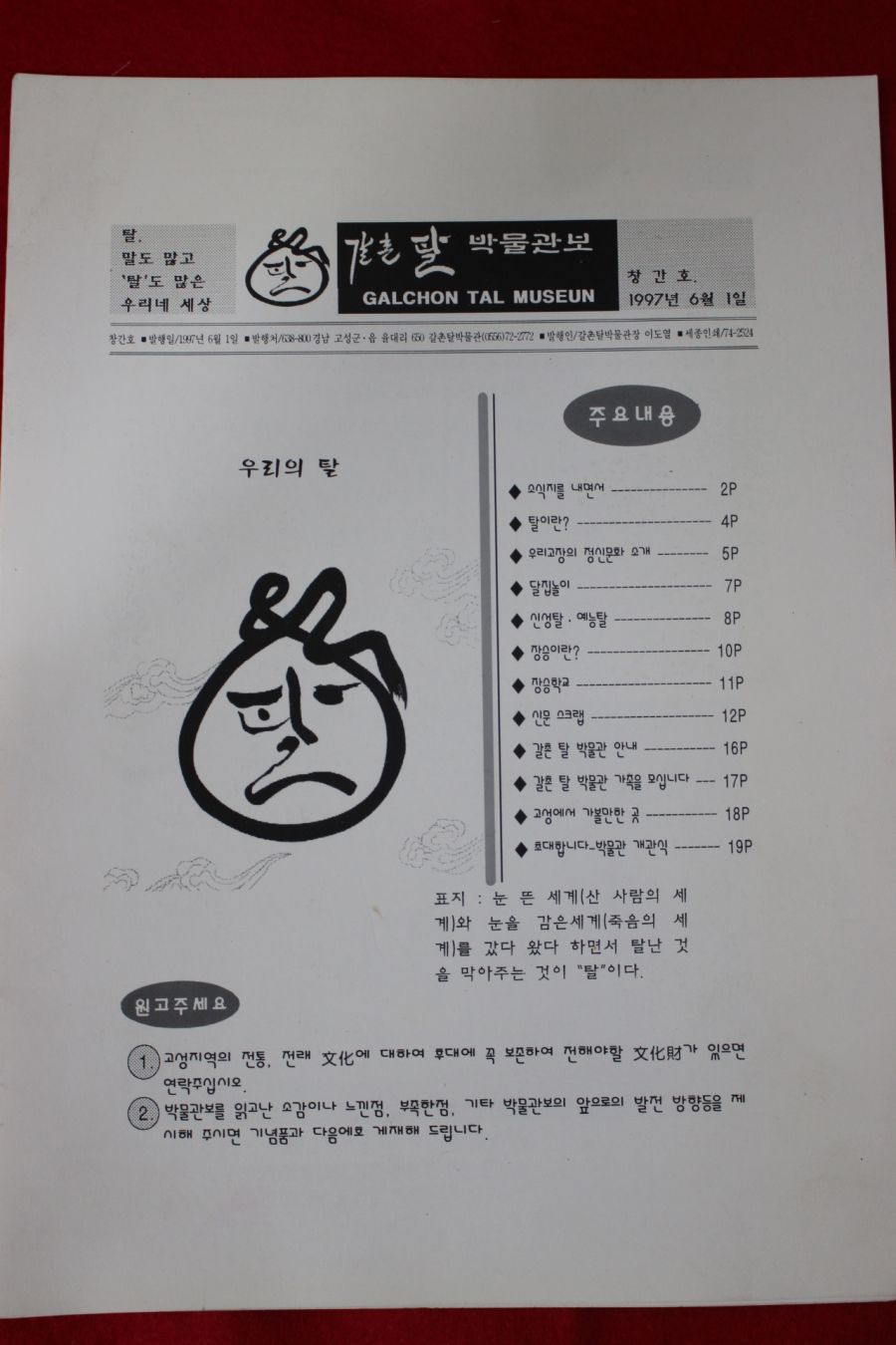 • 1997년 갈촌 탈 박물관보 창간호