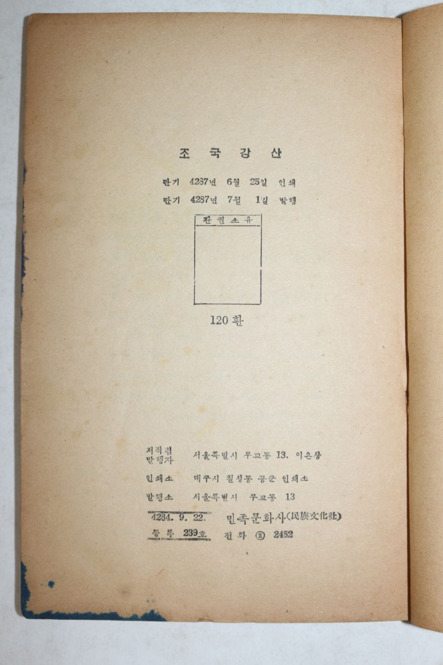 1954년 이은상(李殷相) 조국강산(朝國江山) 1책완질 > 근대도서