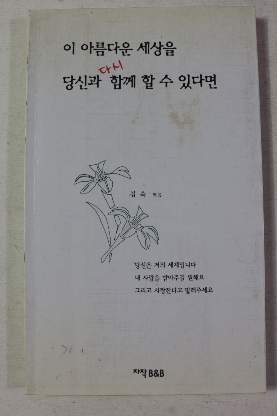 • 1999년초판 김숙엮음 이 아름다운 세상을 당신과 다시 함께 할수 있다면