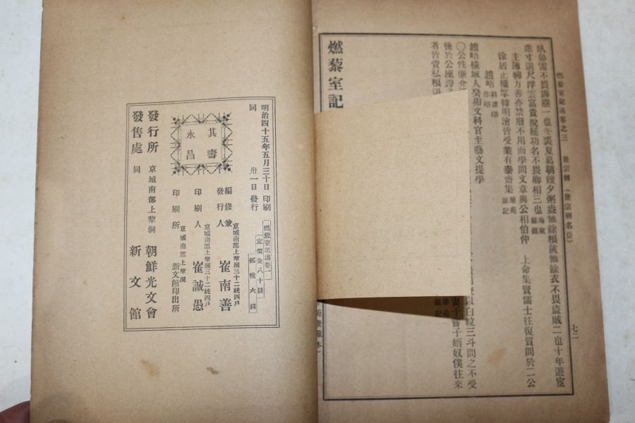 1912년 최남선(崔南善)篇 연려실기술(燃藜室記述) 권1~3 1책 요약정보 및 구매