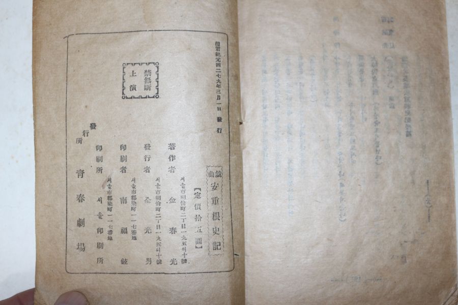 • 1946년초판 김춘광(金春光) 안중근사기(安重根史記) 후편