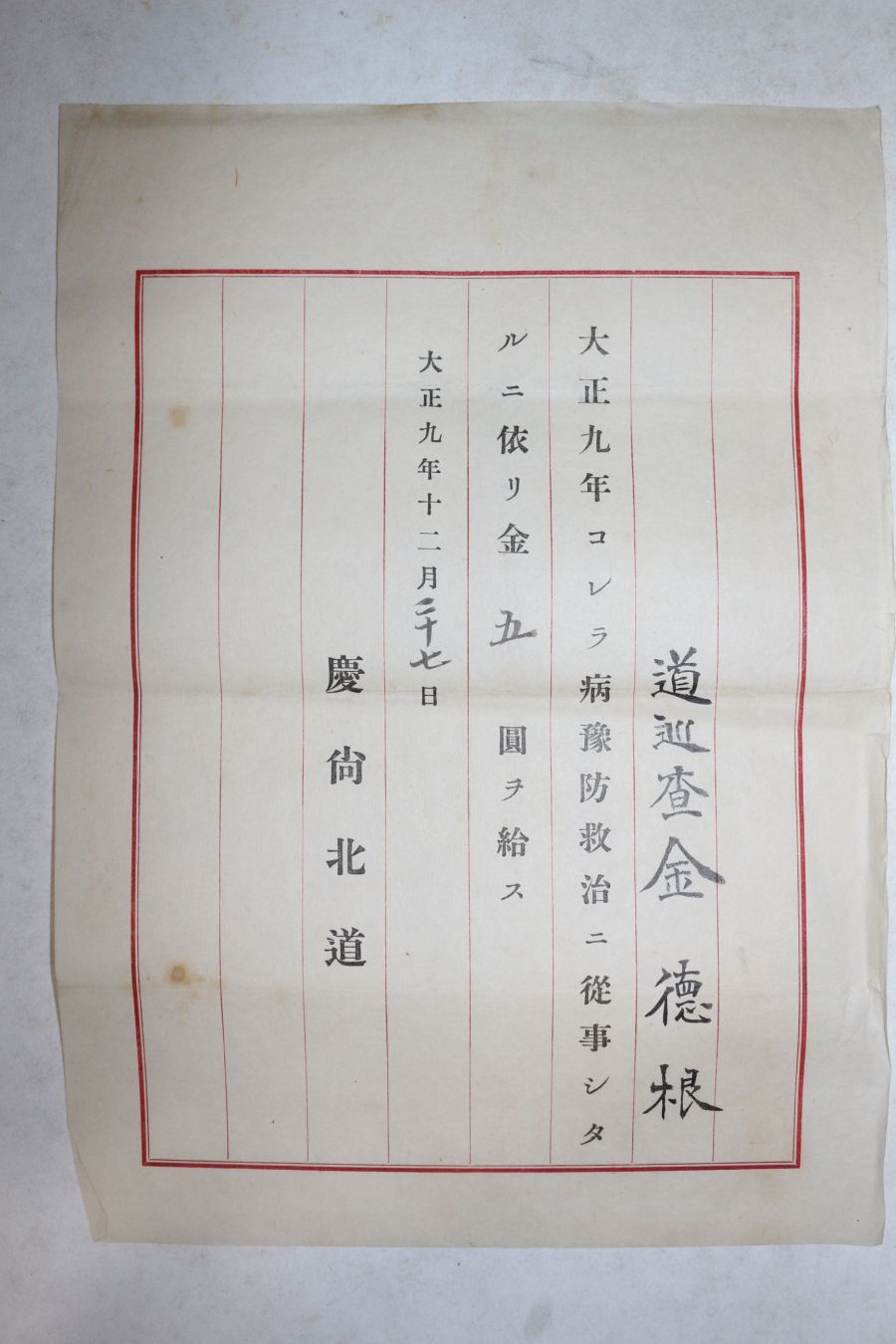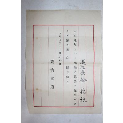 1920년(대정9년) 경상북도 도순사 김덕근 증서 > 기타