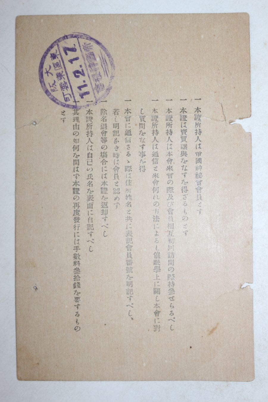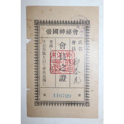 1936년(소화11년) 제국신비회 회원지증 요약정보 및 구매