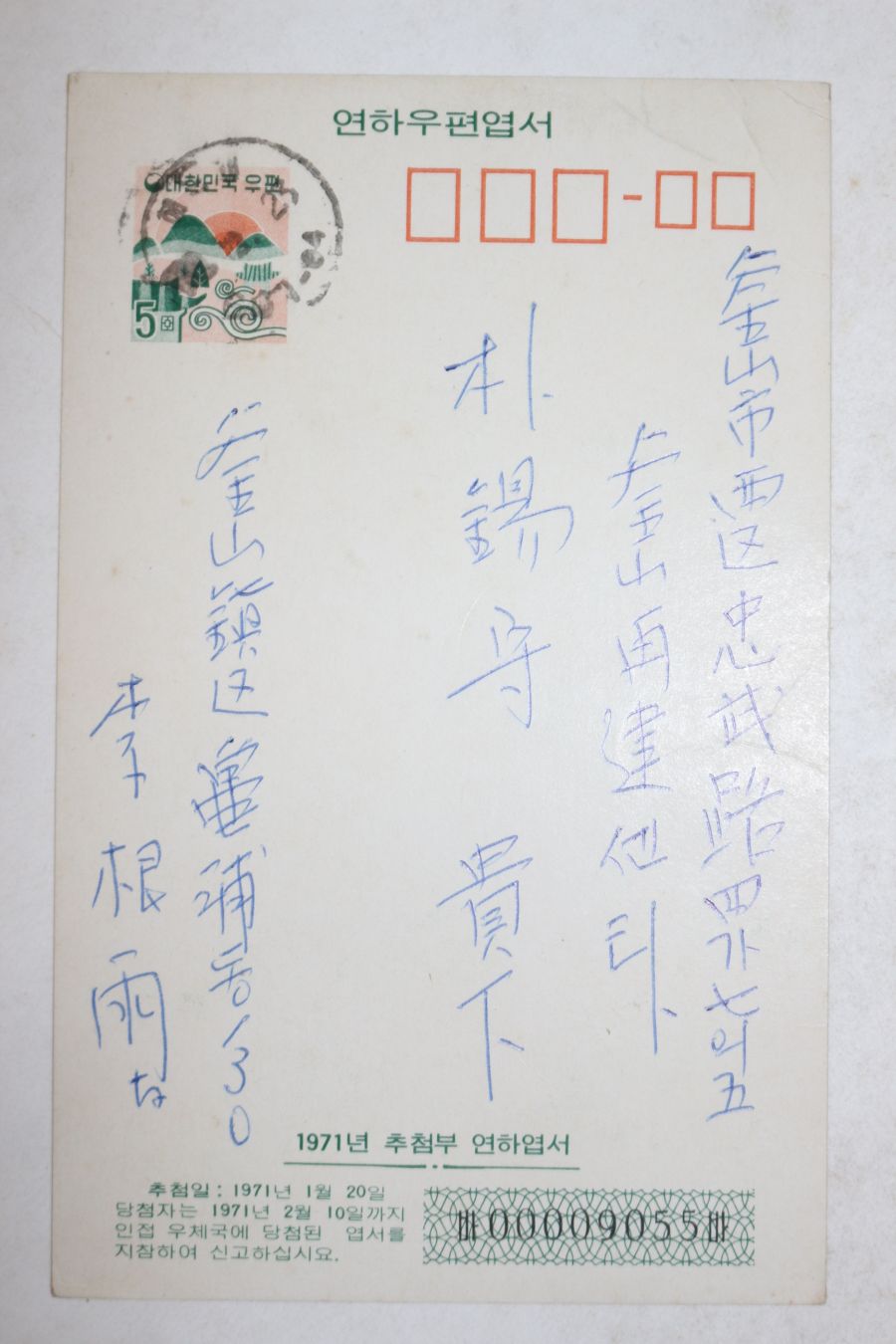• 1971년 추첨부 연하엽서
