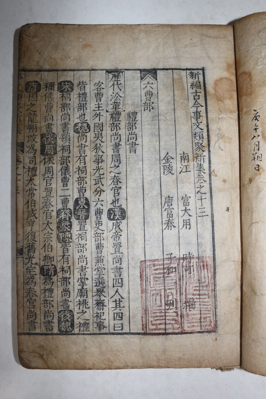 • 목판본 신편고금사문류취(新編古今事文類聚)신집 권13~17 1책