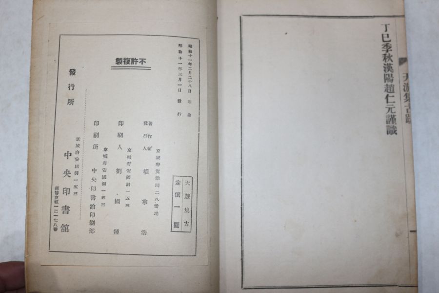 1936년(소화11년)초판 박문달(朴文逵) 천유집고(天游集古) 1책완질 > 희귀고서적