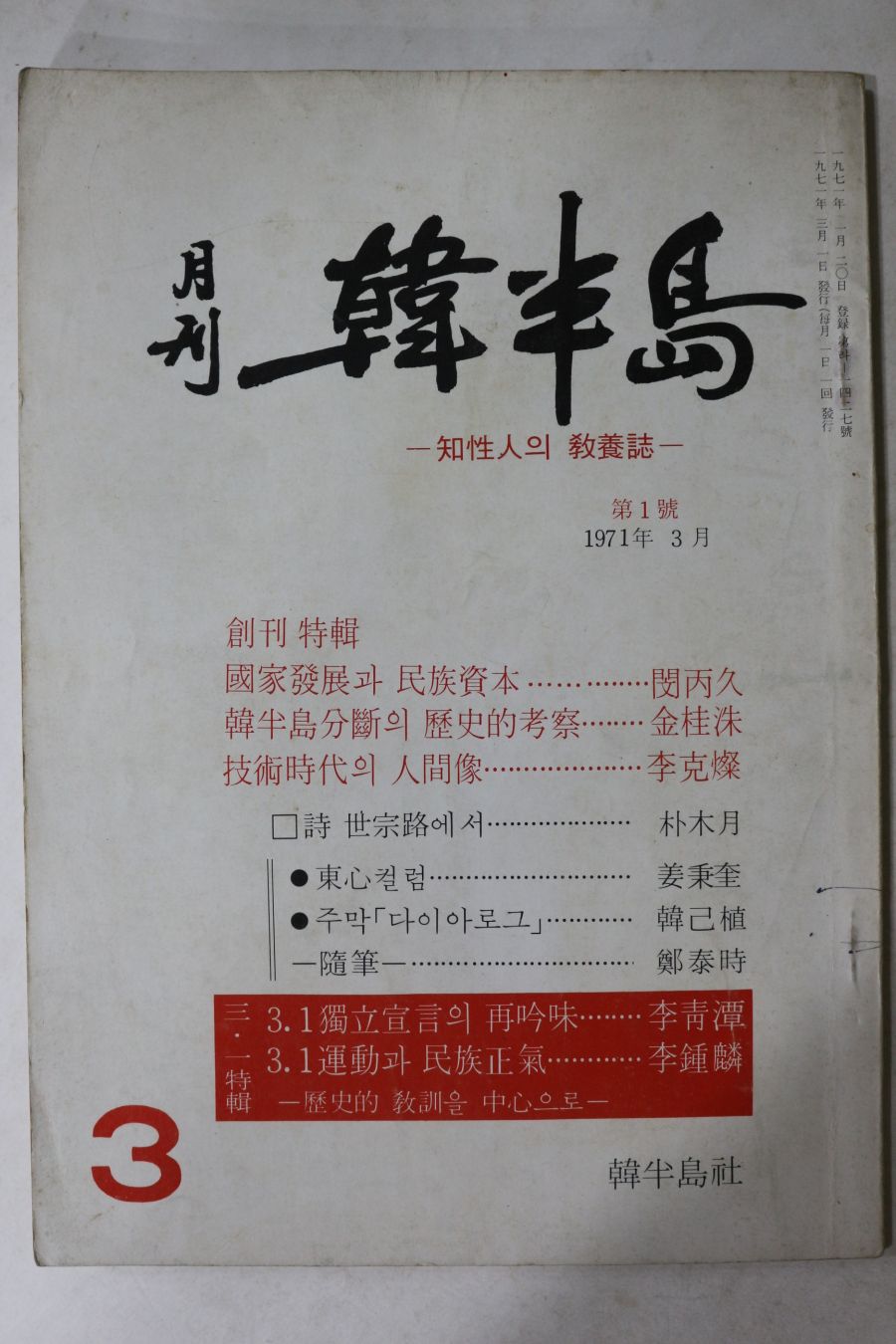 • 1971년 월간 한반도 창간호