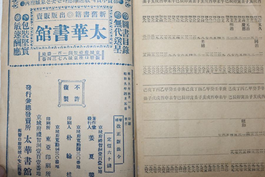 1934년(소화9년) 경성 태화서관 증보 개정신법령 > 희귀고서적