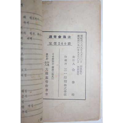 1958년(단기4291년) 대한기독교서회 안신영(安信永)편 통상회의법 요약정보 및 구매