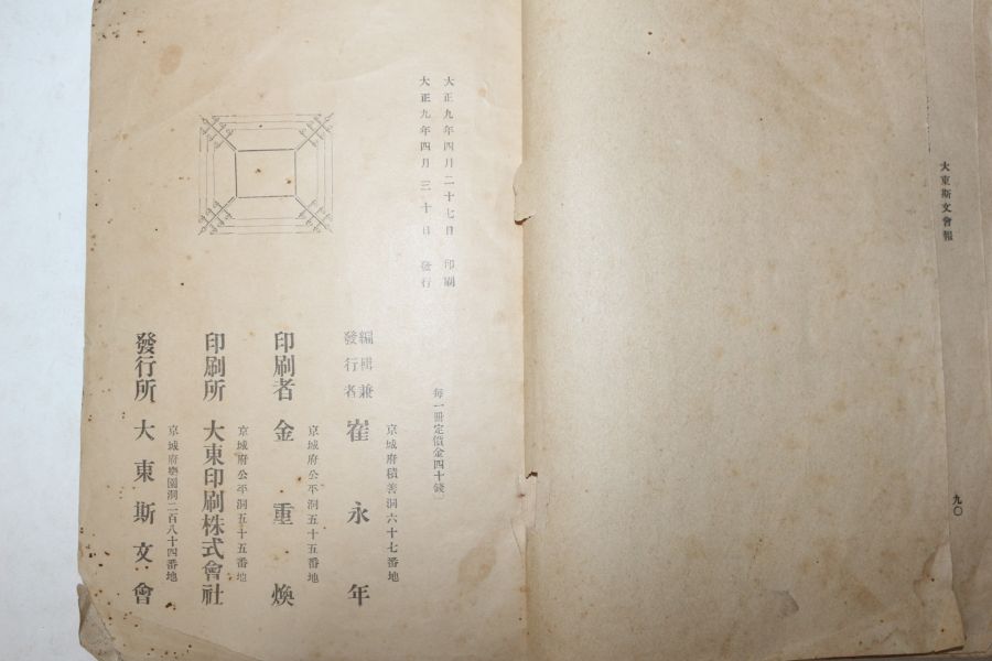 1920년(대정9년) 최영년(崔永年) 대동사문회보(大東斯文會報) 창간호 요약정보 및 구매